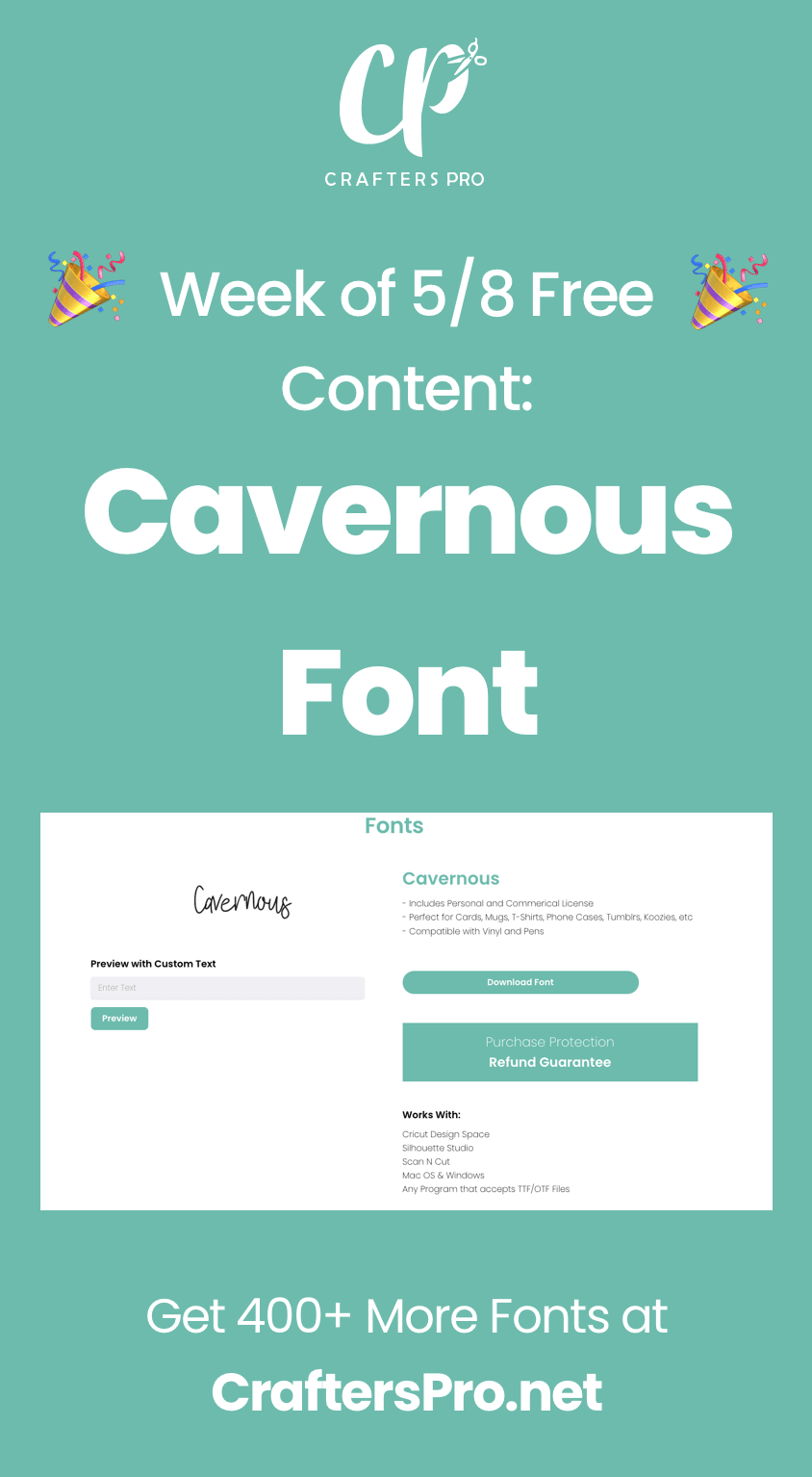 Each week we giveaway content from our CraftersPro membership. This week it's our Cavernous font file. This works with Design Space or any other program on Windows, Mac, or iOS.